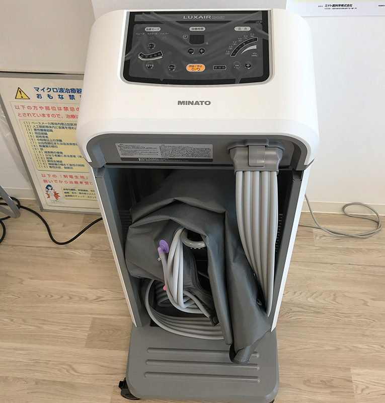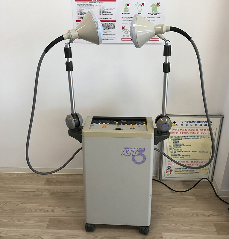 マイクロ波による温熱治療で、筋などの深部の組織まで温熱効果を与え、血流を改善し新陳代謝を促進します。