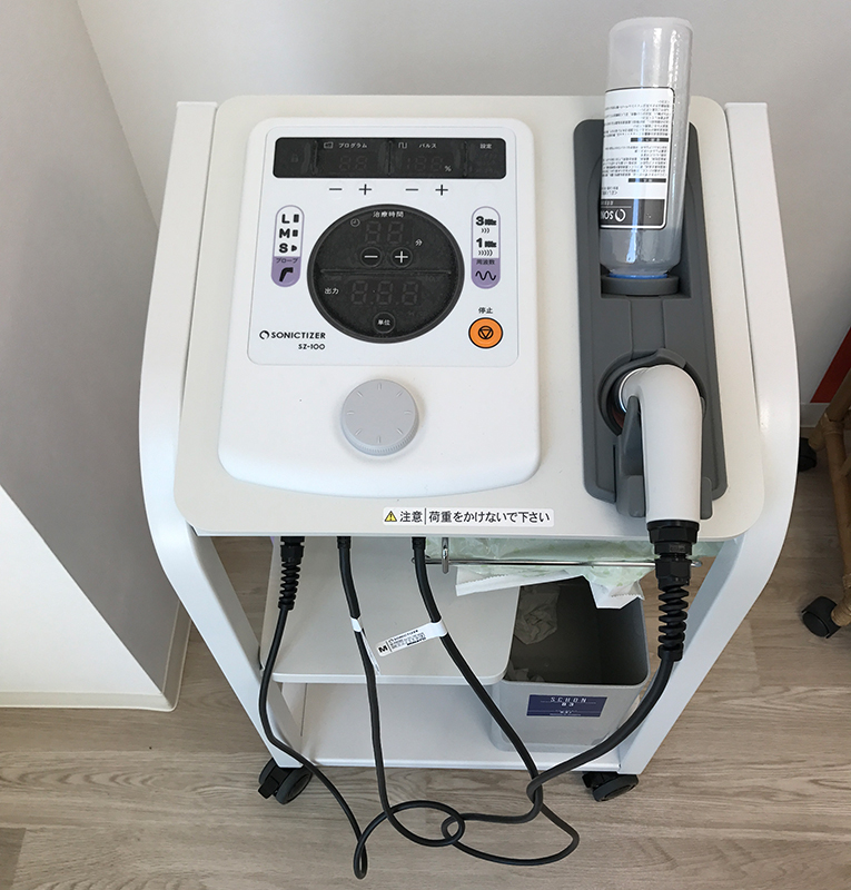 超音波の機械的振動により、その温熱効果とマイクロマッサージ効果による疼痛緩和や血行促進、組織の修復などを行います。